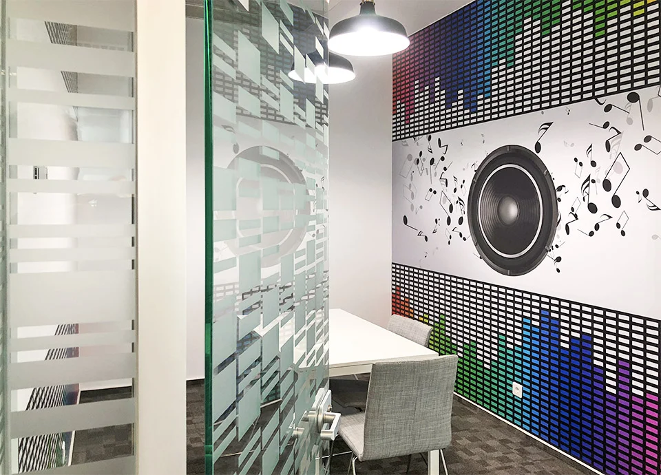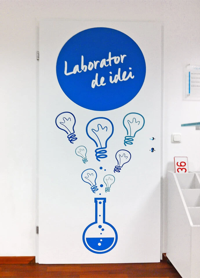 Suntem specializati in decor interior pentru birouri si spatii corporate, oferind stickere pereti, fototapet printat la comanda si solutii vizuale integrate. Lucram la cheie: de la idee si simulare grafica pana la productie si montaj final in Bucuresti si Ilfov. Pentru un design unitar, putem combina stickerele cu folie sablare pentru geamuri, ideala pentru delimitare discreta si confidentialitate.